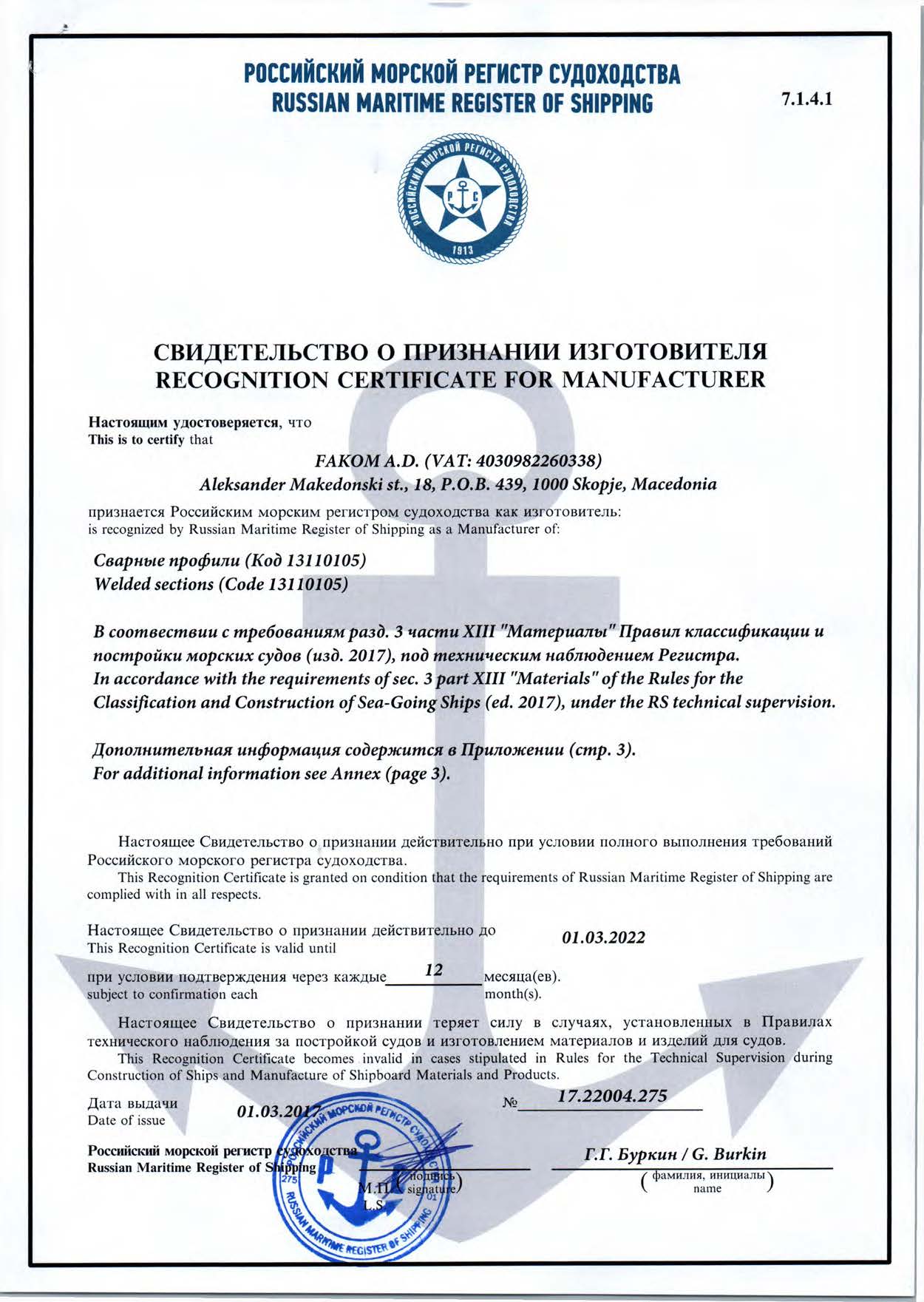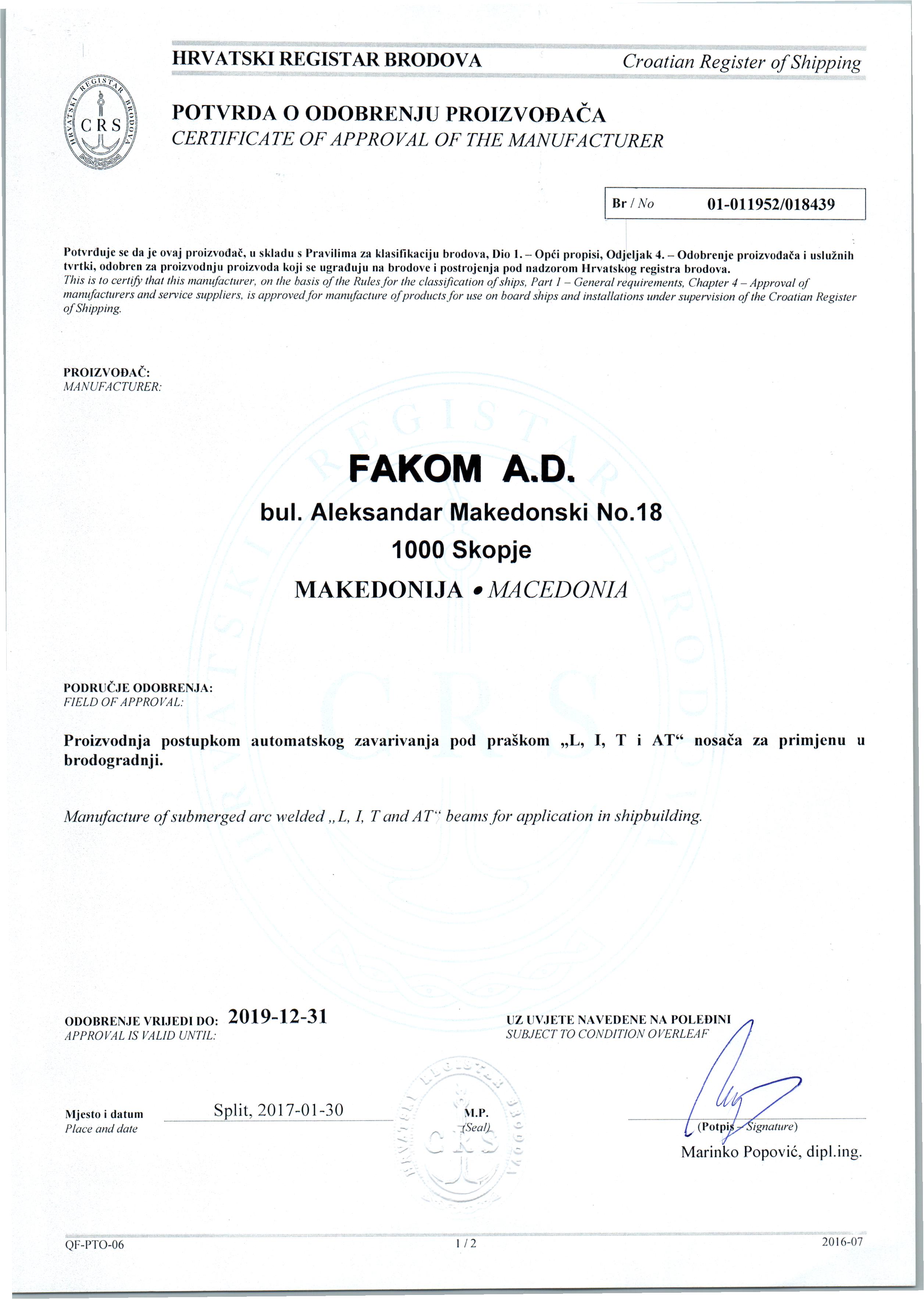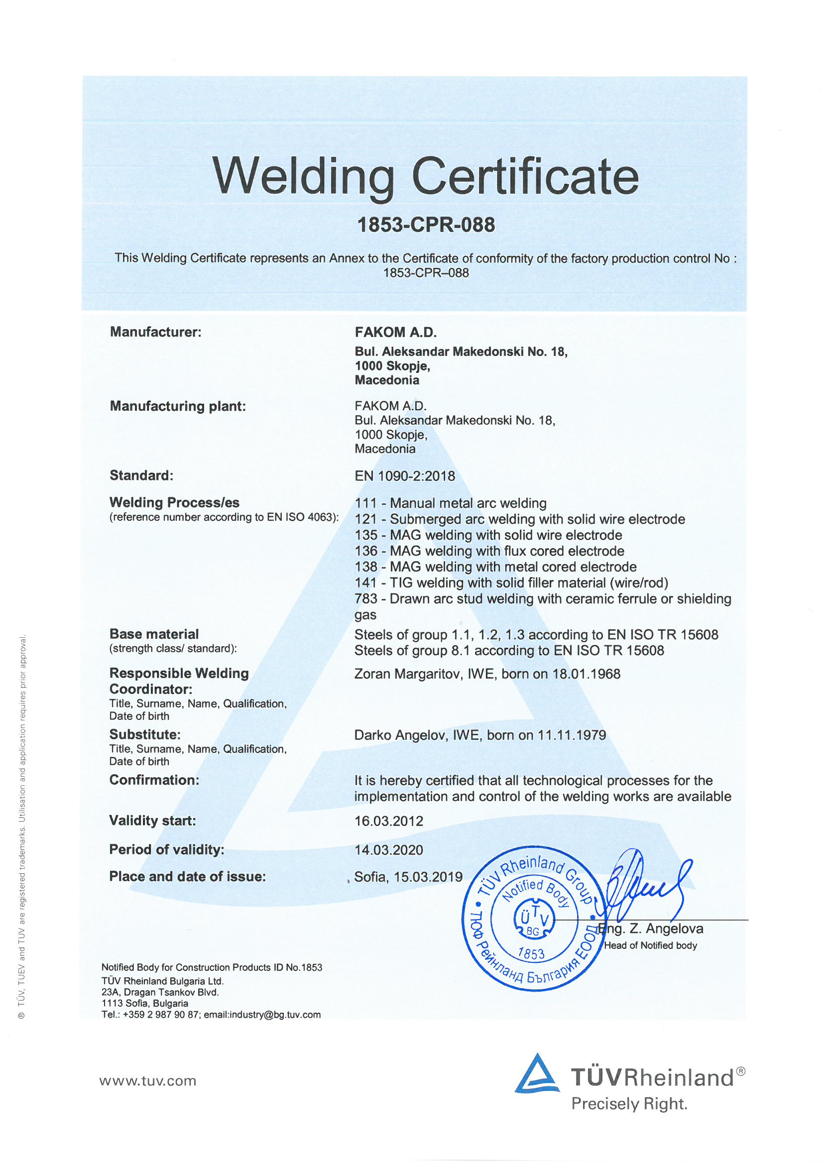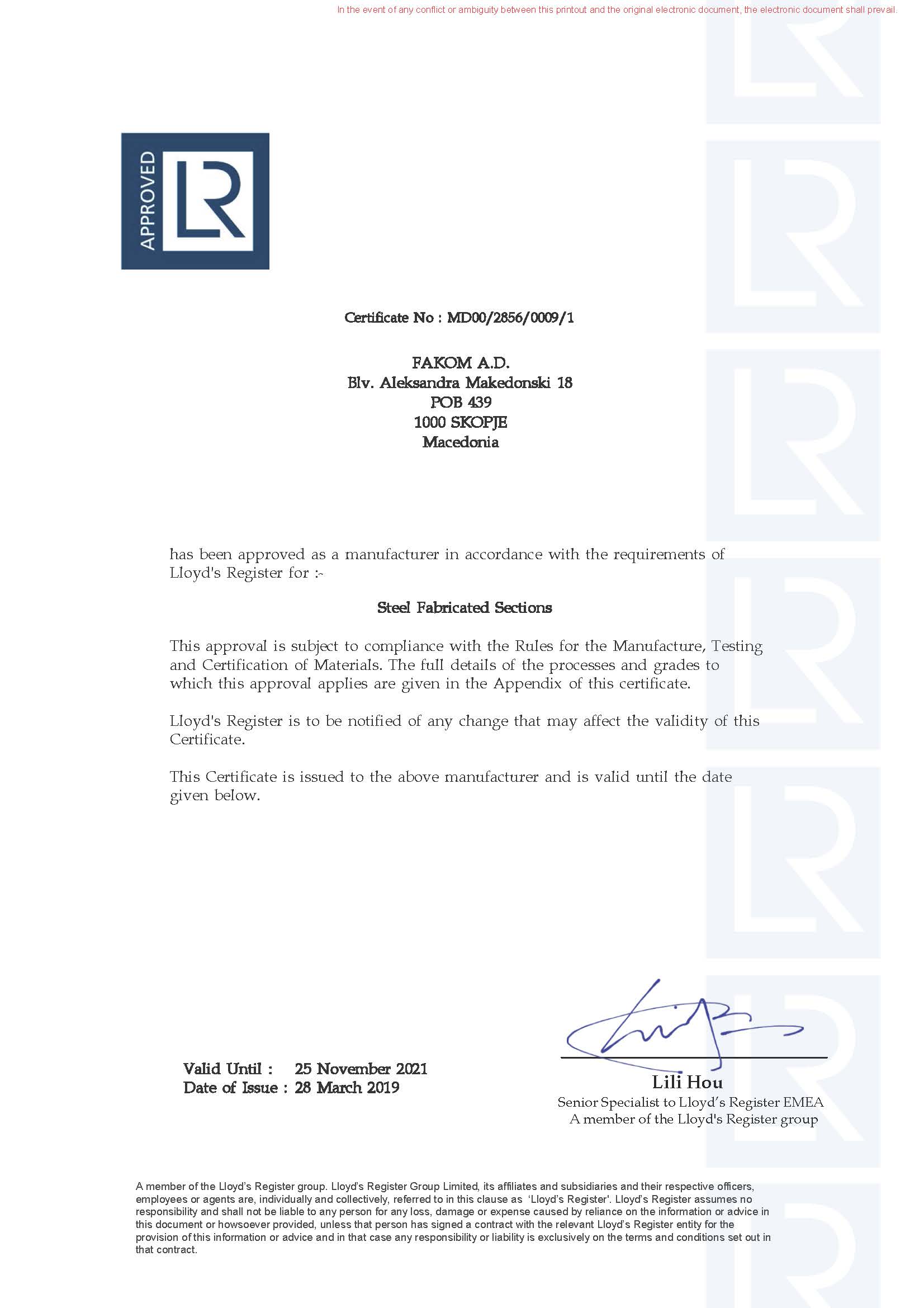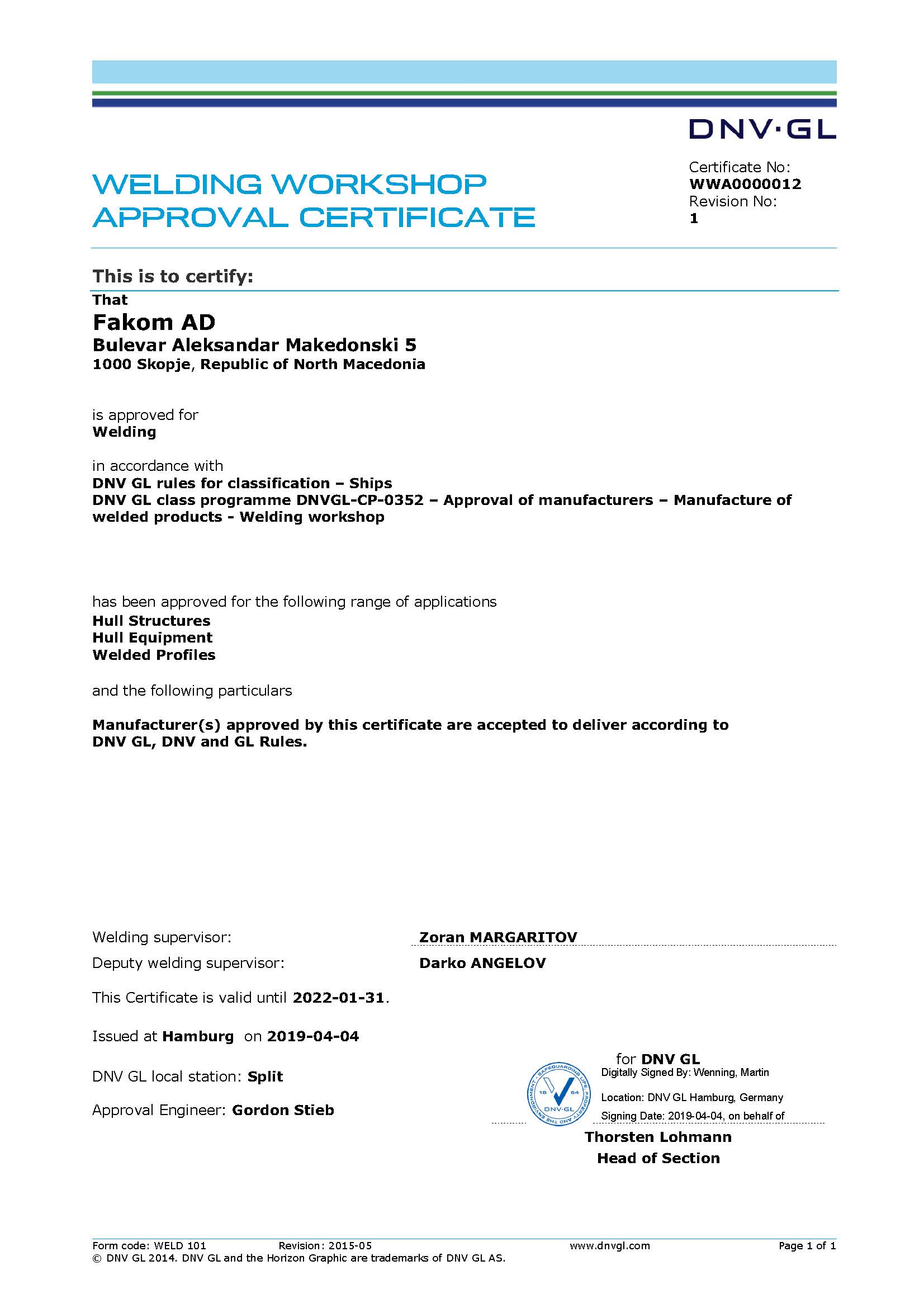 Certificates